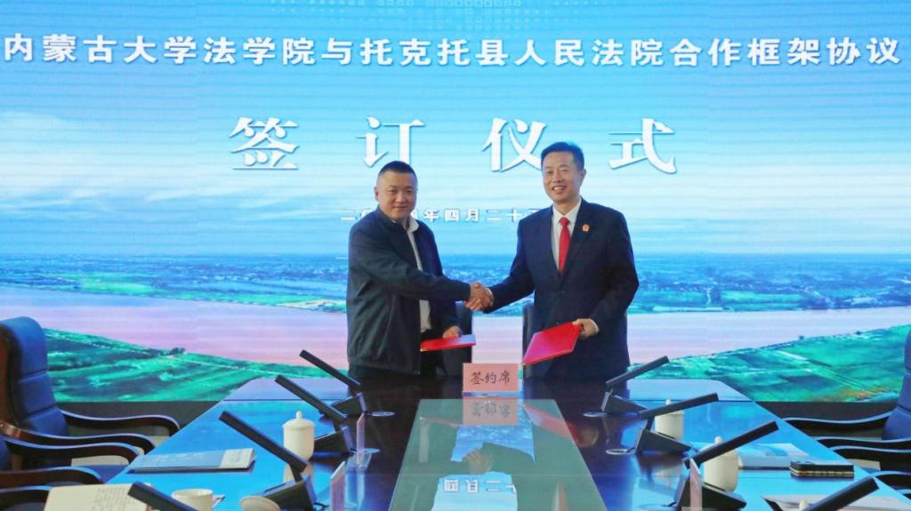 仪式上,托克托县人民法院、BB贝博艾弗森官方网站签署了《BB贝博艾弗森官方网站与托克托县人民法院合作框架协议》。