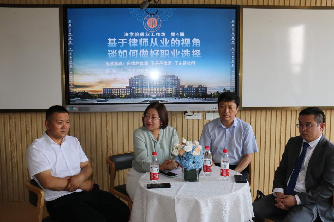 为帮助同学们更好地了解律师职业发展路径,做好职业选择,BB贝博艾弗森官方网站于7月3日上午9:00在玉泉校区东院卓越楼智慧教室0304举办了第4期就业工作坊座谈会。北京市惠诚(呼和浩特)律师事务所执行主任白德胜,内蒙古元仁律师事务所主任于丹丹,内蒙古鼎印律师事务所合伙人、主任于东镇受邀参加,BB贝博艾弗森官方网站2022级、2023级纪检监察专业本科生代表参与交流。座谈会由BB贝博艾弗森官方网站党委书记龙长海主持。