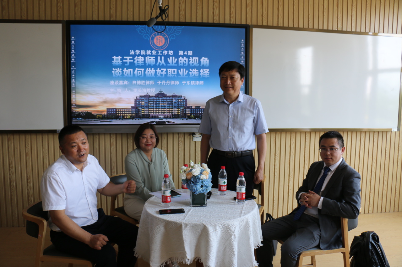座谈会开始,三位嘉宾讲述了自己的成长之路和多年从事法律工作的感受以及对律师行业的认识,并向同学们分享了法学专业可选择的就业方向。