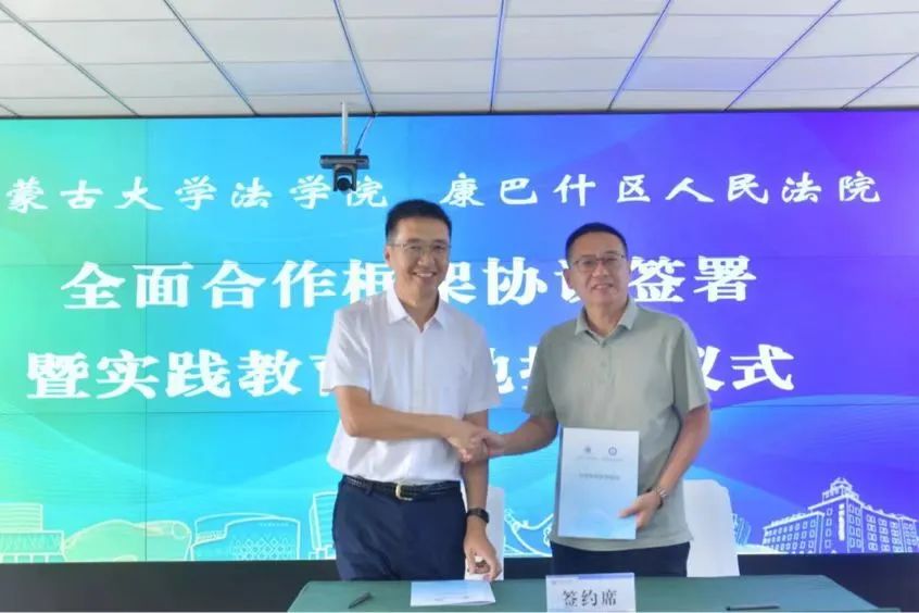 7月25日上午,BB贝博艾弗森官方网站与康巴什区人民法院签署合作框架协议。BB贝博艾弗森官方网站院长丁鹏、副院长马波、办公室主任李俊龙、助理苏日娜,康巴什区人民法院党组书记、院长王率,区法院在家领导班子成员和业务庭室相关负责人、法官等出席仪式。