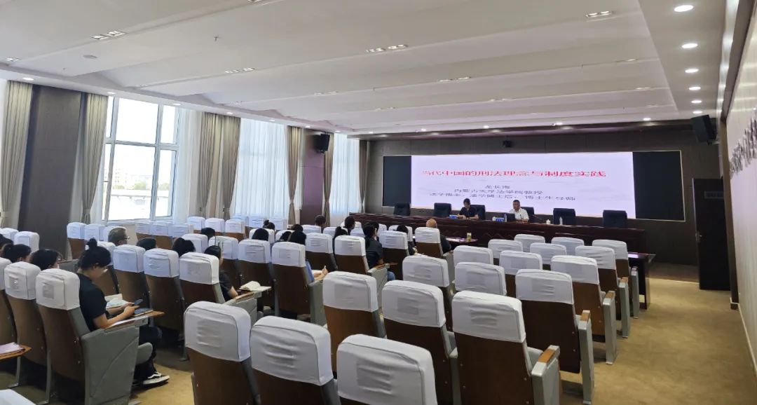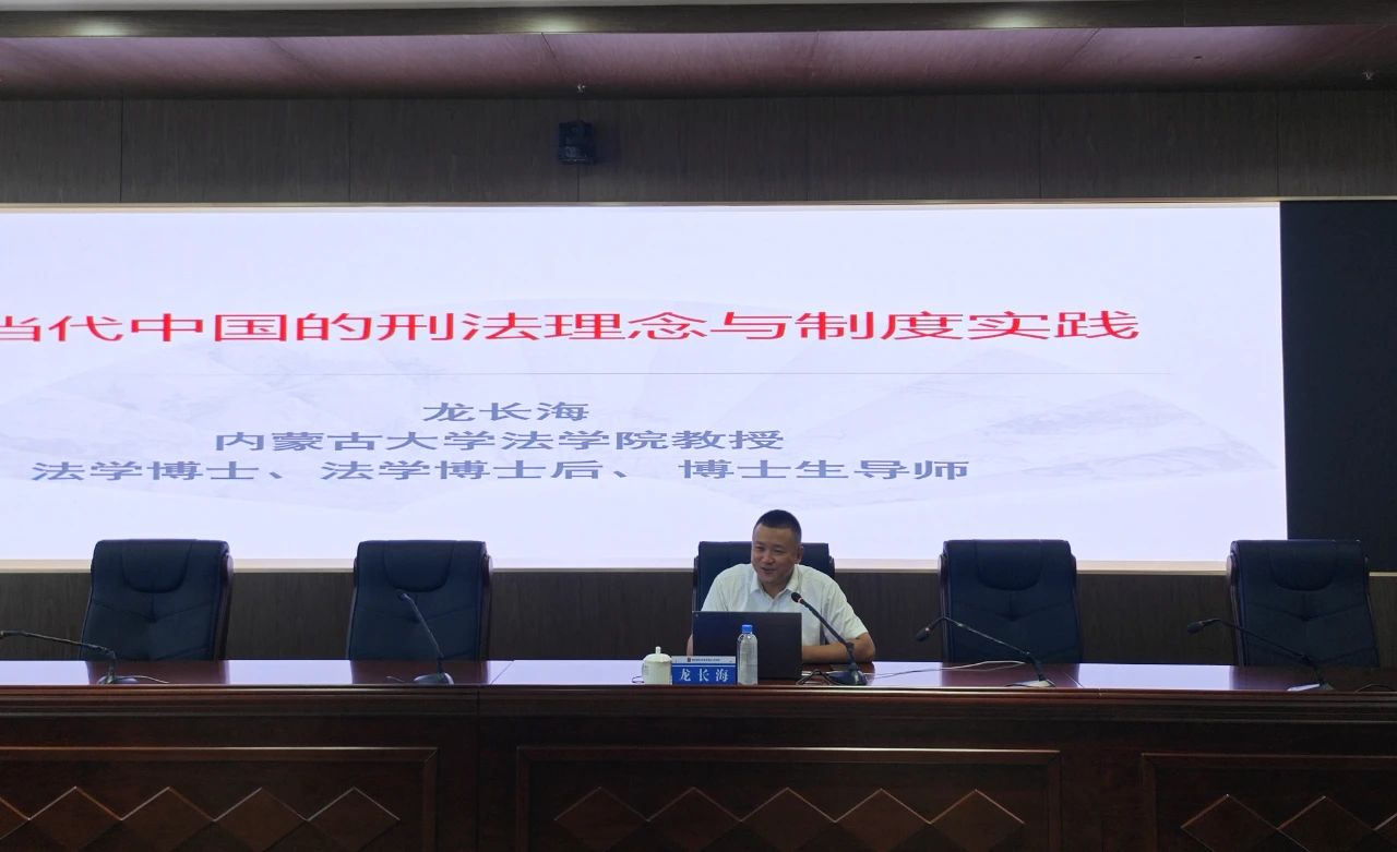 龙长海教授以《当代中国的刑法理念与制度实践》为主题为全体干警开展了授课,以A控告Z某重大责任事故案、多次盗窃案、醉酒型危险驾驶案件为例,为全体干警深入浅出剖析当代中国的刑法理念与制度实践的方方面面。