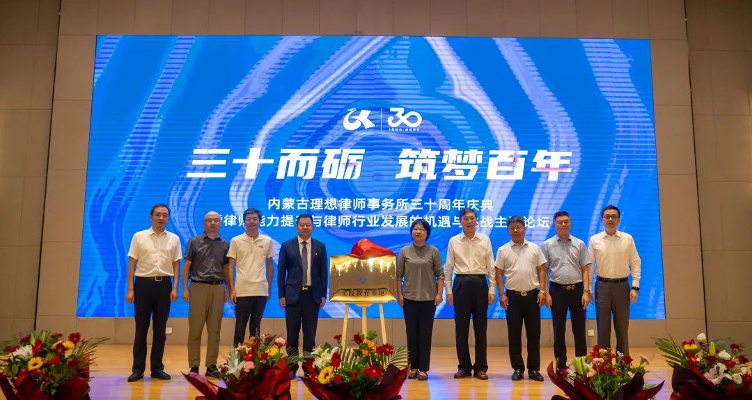 2024年8月3日,内蒙古理想律师事务所举办三十周年庆典暨律师能力提升与律师行业发展的机遇与挑战主题论坛。论坛开始前,BB贝博艾弗森官方网站与内蒙古理想律师事务所签约建立实践教育基地,BB贝博艾弗森官方网站团委副书记兼学工办副主任杨晓华和内蒙古理想律师事务所主任王冠军共同为实践教育基地揭牌。