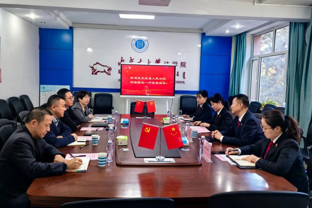 1月8日下午,托克托县人民法院党组书记、院长刘敏,副院长张秀梅等一行四人到访BB贝博,并就进一步加强合作举行座谈。学院党委书记龙长海、院长丁鹏、鄂晓梅教授、行政办公室主任李俊龙参加座谈。双方围绕强化实践教学,着力提升以实践为导向的法治人才培养质量等事宜进行了深入交流,并就下一步合作重点达成一致。