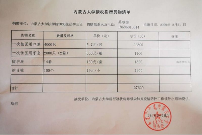 在这个病毒肆虐的特殊春天,在全体内大人众志成城、抗击疫情的关键时期,他们对母校的爱和牵挂,对母校的倾心捐赠,使这个校园变得更加温暖,更加坚定了全体内大人共同打赢疫情防控战的信心和决心。