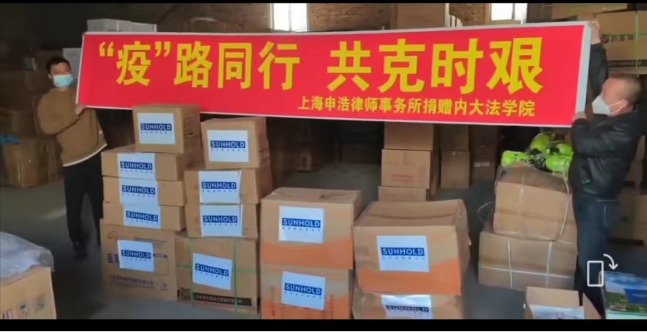 申浩律师事务所内蒙古云执团队负责人、内大BB贝博艾弗森官方网站2011级校友赵云涛律师,在了解到母校因疫情影响急需自热米饭等物资时,立即联系从北京等地调运筹集了1100个自热米饭,同时紧急采购了12000个口罩、210瓶酒精、50套防护服、500个防护面罩、84消毒液40升、免洗手消毒凝胶70个捐赠母校,助力母校抗击疫情。