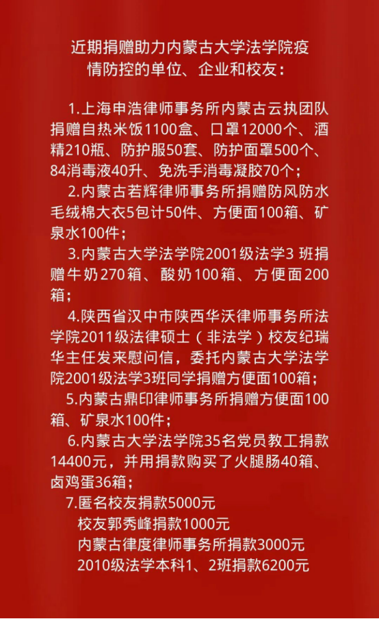 大道不孤,大爱无疆。呼和浩特疫情以来,BB贝博艾弗森官方网站收到了来自四面八方的援助与捐赠,这些温暖的瞬间,为疫情防控注入源源不断的动力。我们再一次向在危难之中伸出援手的单位、企业、校友和党员教工表示感谢。我们相信,只要我们共同努力,就没有跨越不了的难关。希望疫情早日退散,风雨过后,必见彩虹!