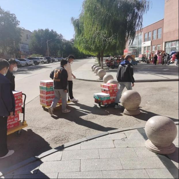 在BB贝博艾弗森官方网站学生的积极参与和搬运下,所有物资顺利送至宿舍楼下并分发到全体学生手中。