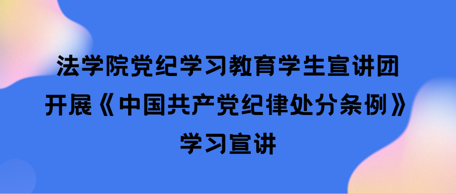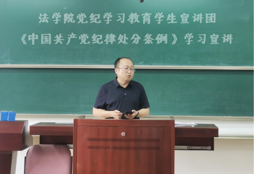 活动中,宣讲团成员以学习解读《中国共产党纪律处分条例》为题展开,向同学们介绍了《中国共产党纪律处分条例》修订的主要内容、亮点以及意义。其中张瑶瑶同学以“《中国共产党纪律处分条例》——坚持以严的基调全面加强党的纪律建设之体现”为题,冯浩同学以“《中国共产党纪律处分条例》——制度的生命在执行”为题,陈婧同学以“《中国共产党纪律处分条例》——如何做好党员领导干部的管理监督工作”为题,付强同学以“人民至上 视角下对《中国共产党纪律处分条例》第六章的共同学习”为题,安泳铭同学以“《中国共产党纪律处分条例》——组织纪律处分中的中国特色”为题,孙婷婷同学以“《中国共产党纪律处分条例》之生活纪律解读”为题,六位同学分别从不同的角度阐述自己对于《中国共产党纪律处分条例》的理解与感悟,并且结合典型案例,深入浅出地解读了《中国共产党纪律处分条例》具体章节条文,引导同学们深刻认识新修订《中国共产党纪律处分条例》的重大意义、丰富内涵和精神实质,增强贯彻执行的思想自觉和行动自觉,做到知敬畏、存戒惧、守底线。
