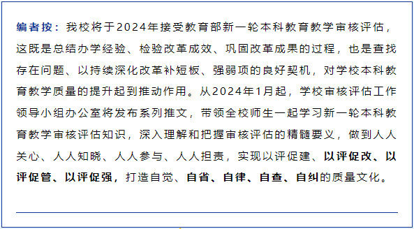 一是基本材料。人才培养方案、教学管理规章制度、近三年学校教学质量报告、申请报告等应该作为评估的基本材料上传至评估系统,不能等到专家需要时再临时提交。