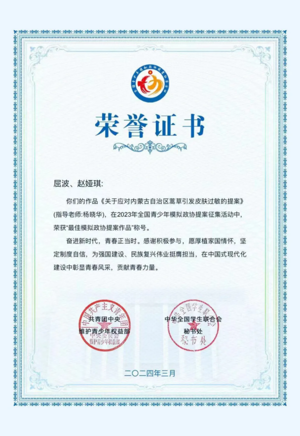 BB贝博艾弗森官方网站学生在2023年全国青少年模拟政协提案